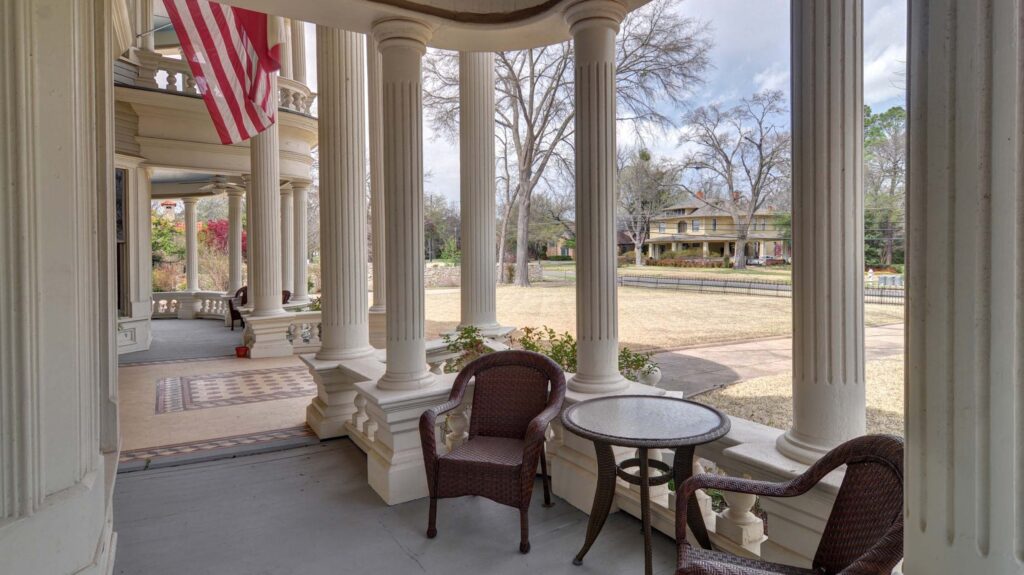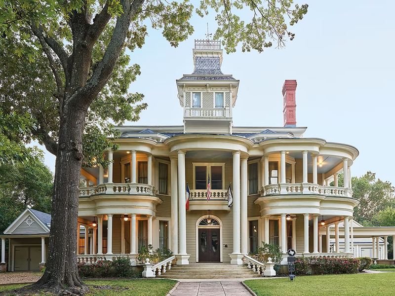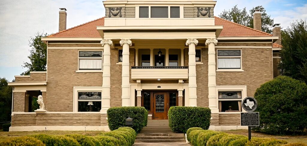 Designed by architect James E. Flanders, the Colonial Revival–Prairie-style home was built using proceeds from Spindletop Oil. The house predates automobiles, and original horse hitch rings remain in the porte-cochere. Home life centered on gathering and conversation, and the mansion hosted many grand parties.